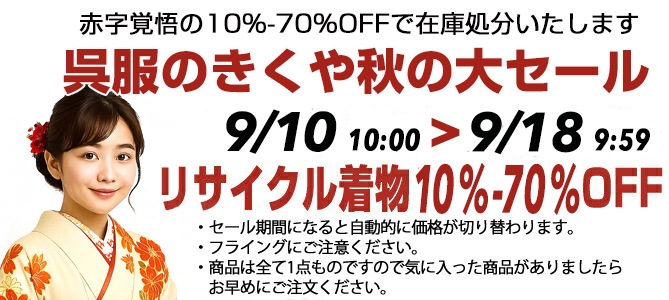 X(旧ツイッター)でも新商品の登録やセール情報、着物豆知識と店長の勝手なつぶやきをツイートしております。フォローお願い致します。 Follow @gofukunokikuya |